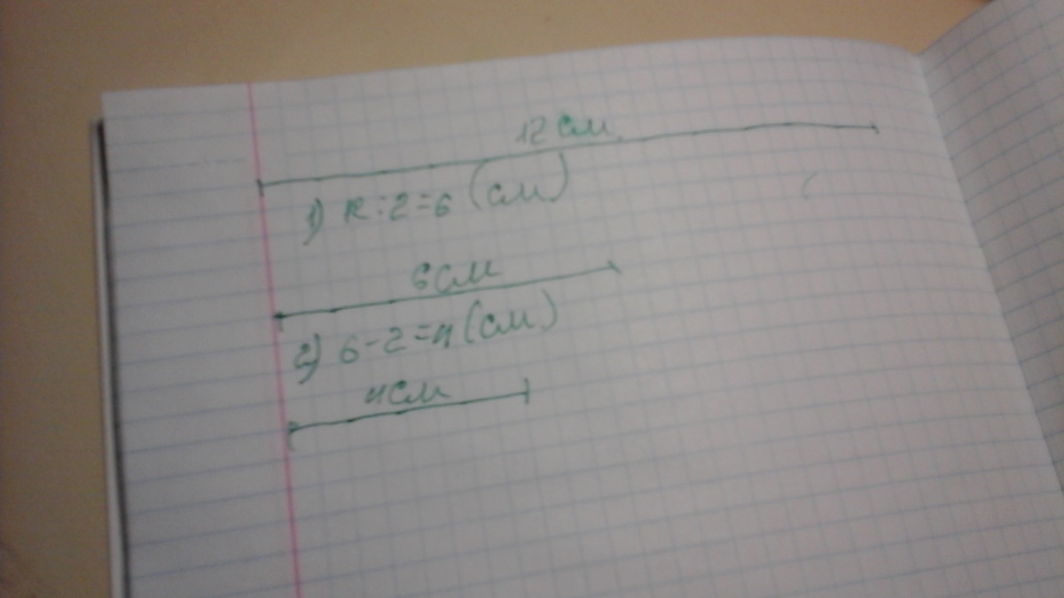 начерти 3 отрезка:длина первого 12 см ,длина второго равна половине длины первого,а длина третьего на 2 см меньше длины второго.