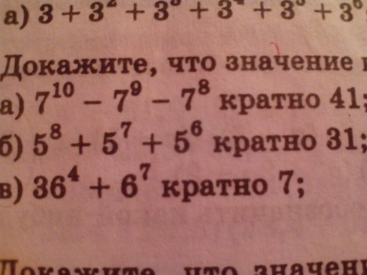 б) 5⁸ + 5⁷ + 5⁶ = 5⁶(5² + 5 + 1) = 5² *(31) делится на 31.