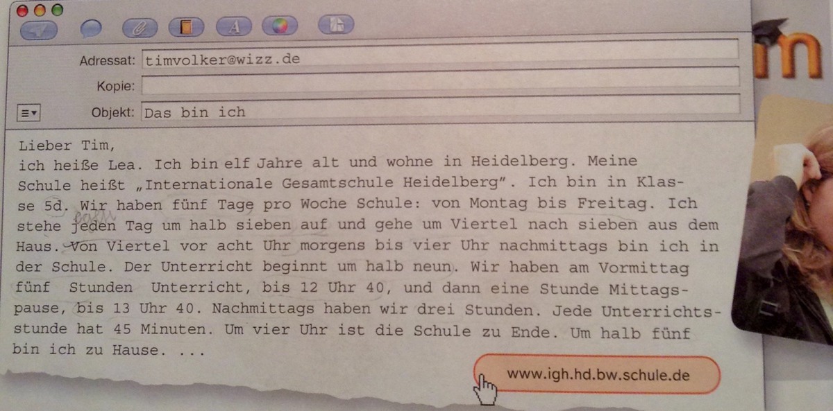Меня зовут Лия. Мне одиннадцать лет и живу я в Хейделберге. Моя школа