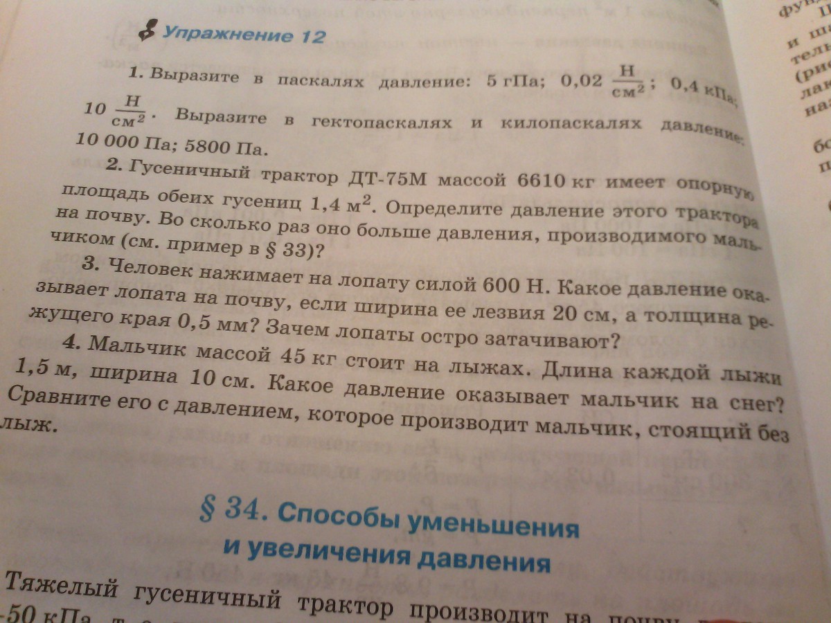 Давление рассчитывается по формуле p=f/s, где f- сила, а s- площадь, к которой прикладывается сила. Сила дана, а площадь можно посчитать перемножив ширину лопаты на толщину лезвия. Т