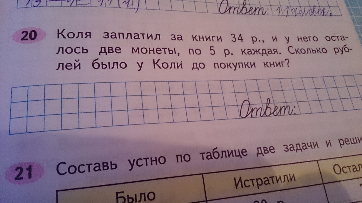 коля заплатил за книги 34 руб и у него. осталось. две монеты по 5 руб каждая сколько рублей было у коли ло покупки книг.