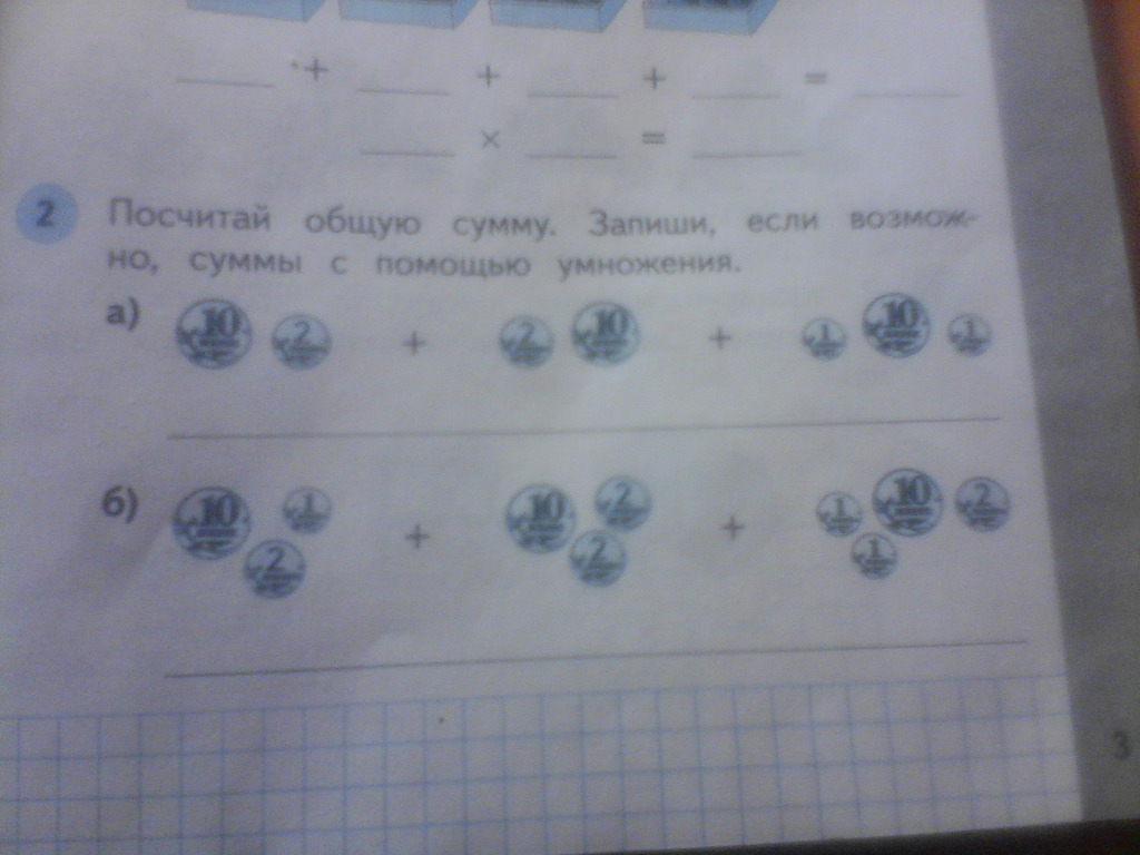 это не все. Нужно записать, если возможно, суммы с помощью умножения
