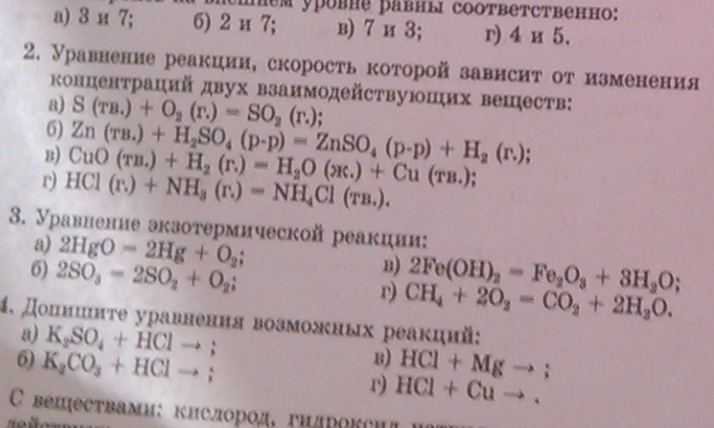 2) От концентраций 2х реагирующих веществ зависит реакция идущая между газообразными веществами Ответ г)