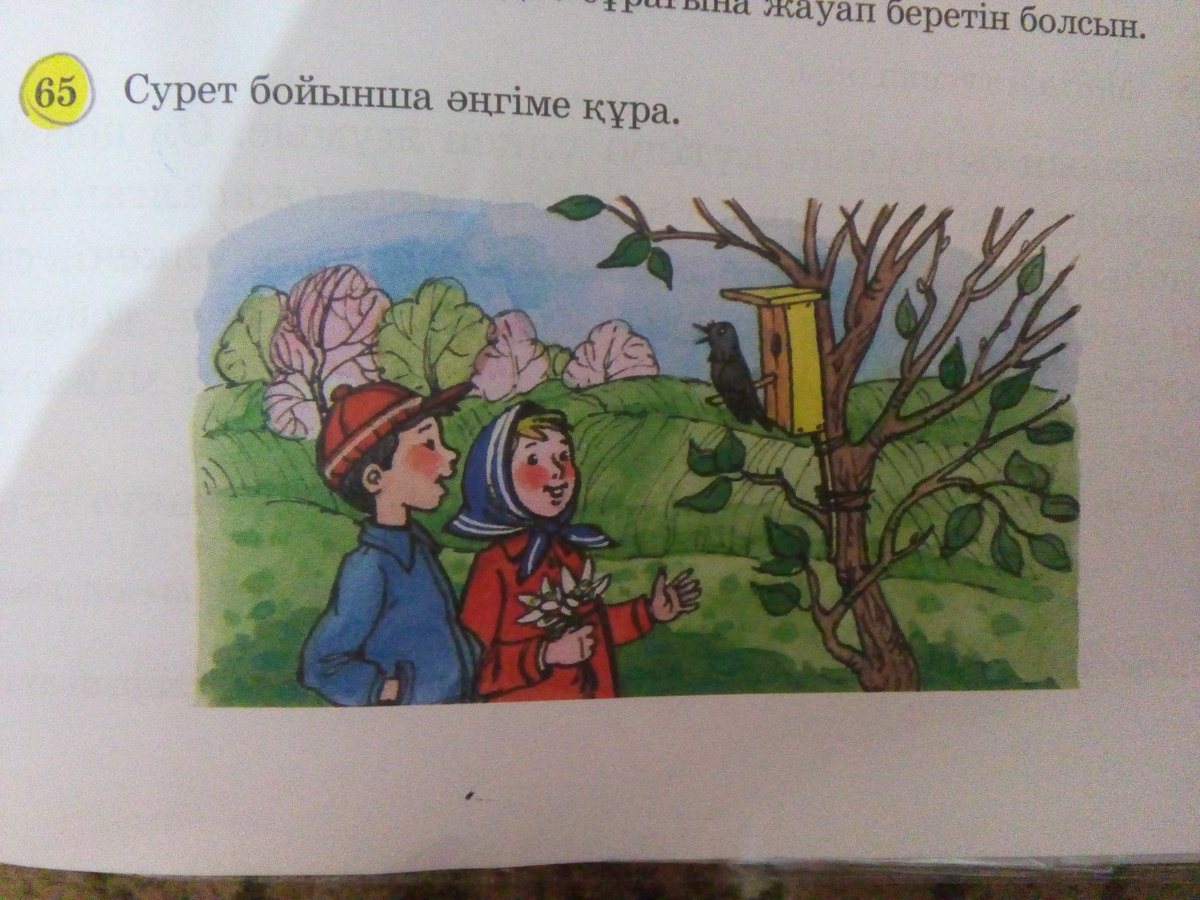 Куз келди. Коп кустар жылы жакка ушып кетти. Кейбир кустар кыстап калады. Сол кустарга балалар уя жасап, камкорлыкпен карауда. Кус балаларга ризашылыгын билдирип, адеми ан салып берди. (Шамамен осылай)