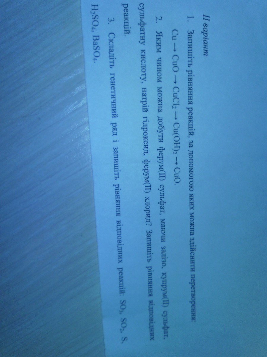 каким образом можно добыть железа(II)сульфат ,имея залижь меди(II)сульфат,сульфатну кислоту,гидросид железа (II)хлорыд ??запишите уравнения соответствующих реакций ? 3)составте генетыческий ряд и запишите соотвествующих реакций SO3,SO2,S,H2SO4,BaSO4