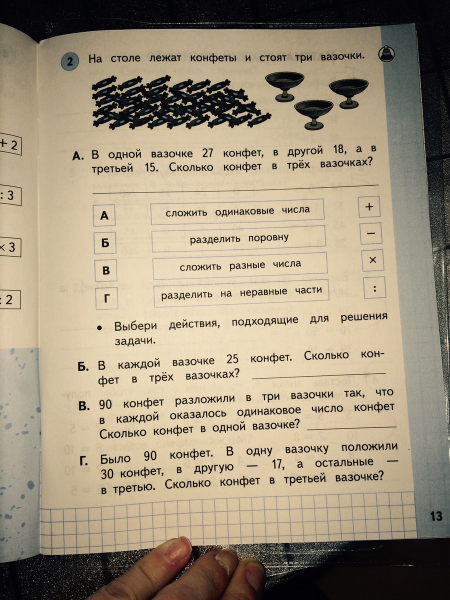 2)А)27+18+15=50 б)25*3=75, 90:3=30 в)90-(30+17)=43