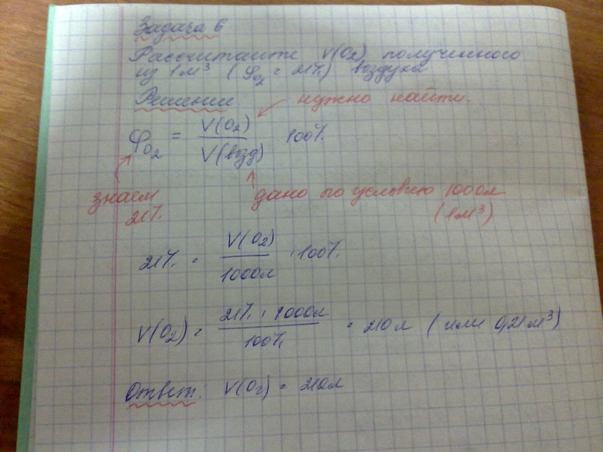 Рассчитайте объем кислорода,полученного из 1 м3 воздуха,если известно,что объемная доля кислорода в воздухе состалвяет 21%.