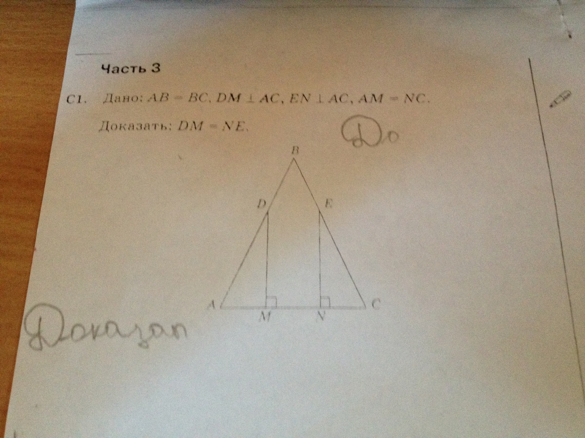 треугольник АМD=треугольнику ENC (по стороне и 2 прилежащим к ней углам (2 признак равенства треугольников)) :