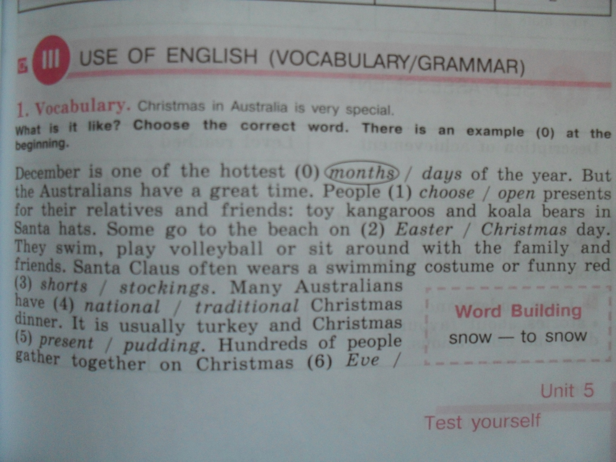 1) choose 2) Christmas 3) shorts 4) traditional 5) pudding 6) Eve 7) light
