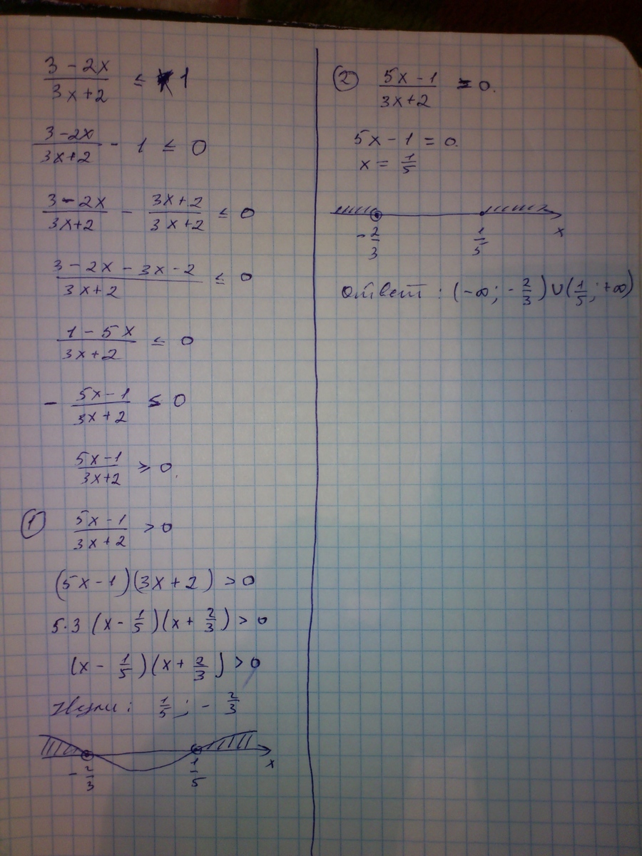 1. Решаем строгое неравенство. Деление в строгом неравенстве можно заменить сложением и тогда гораздо легче решить методом интервалов. Отмечаем получившиеся промежутки.