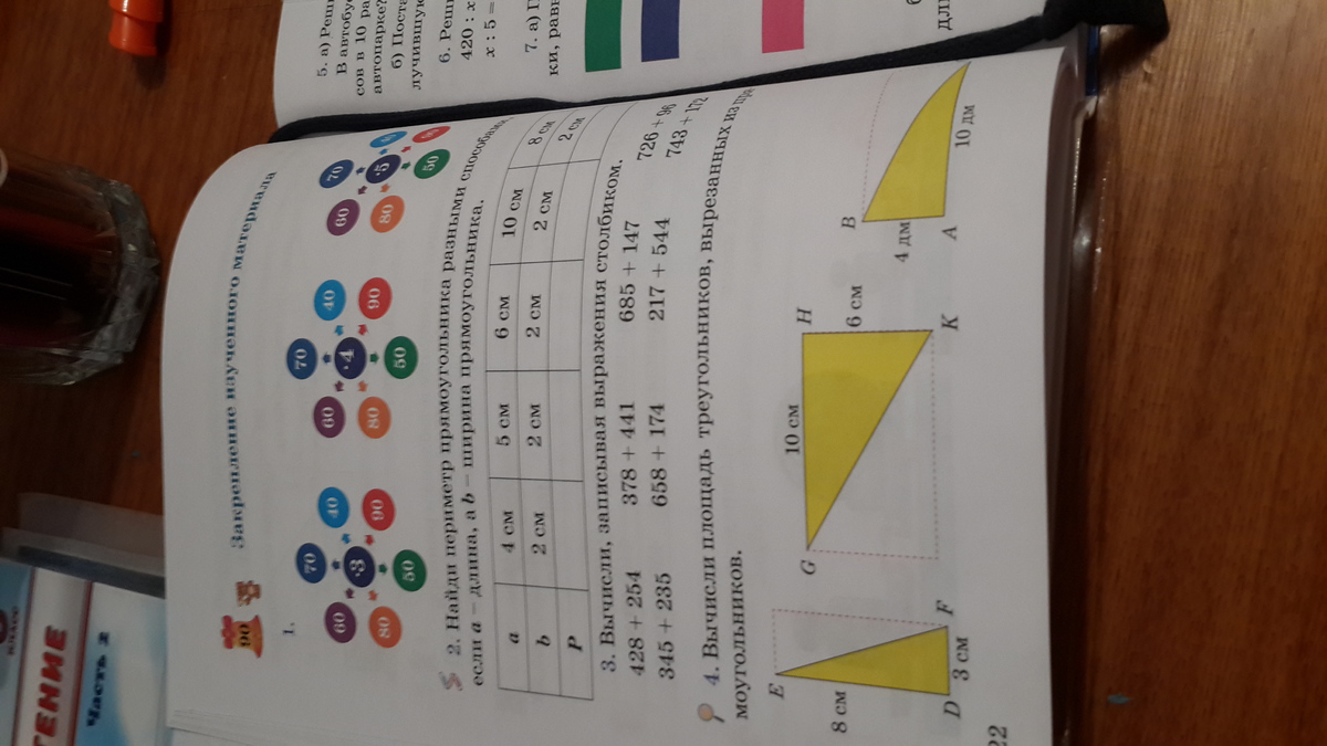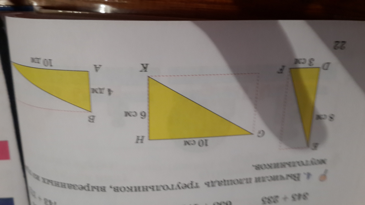 помогите пожалуйста решить под номером 4.Нужно вычислить площадь треугольников, вырезанных из прямоугольников.