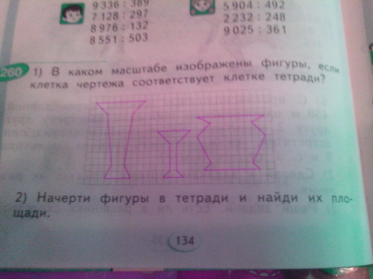 В каком масштабе изображены фигуры если клетка чертежа соответствует клетки тетради начерти фигуры в тетради и найди их площади
