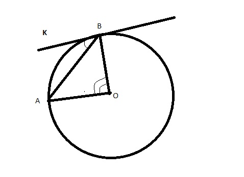 Помогите пожалуйста решить задачу по геометрии: Докажите, что угол между хордой и касательной,проведенной к окружности из одного конца данной хорды, равен половине центрального угла, натянутого ( это вроде опирающего) на эту хорду. Спасибо заранее = )