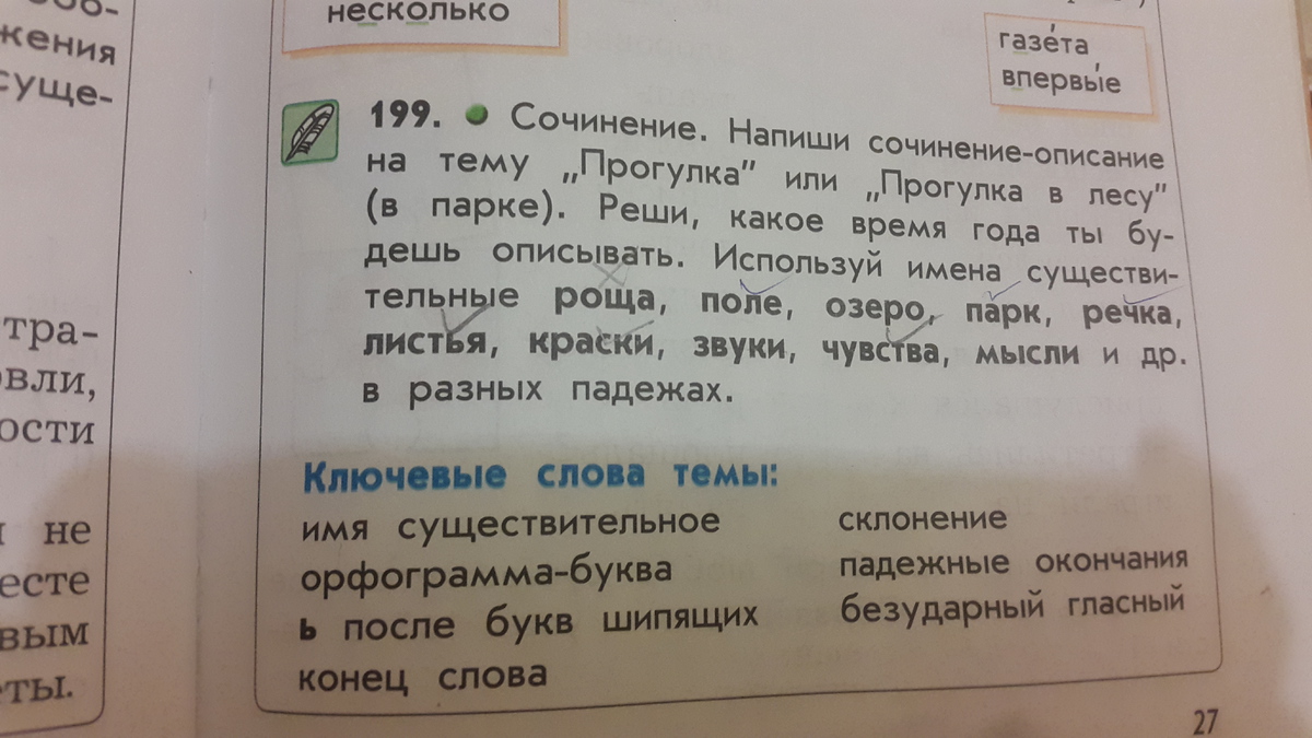 Сочинение. Напиши сочинение описание на тему прогулка или прогулка в лесу в парке решил какое время года ты будешь записывать используя имена существительные роща поле озеро парк речка листья краски звуки чувства мысли и др. В разных падежах