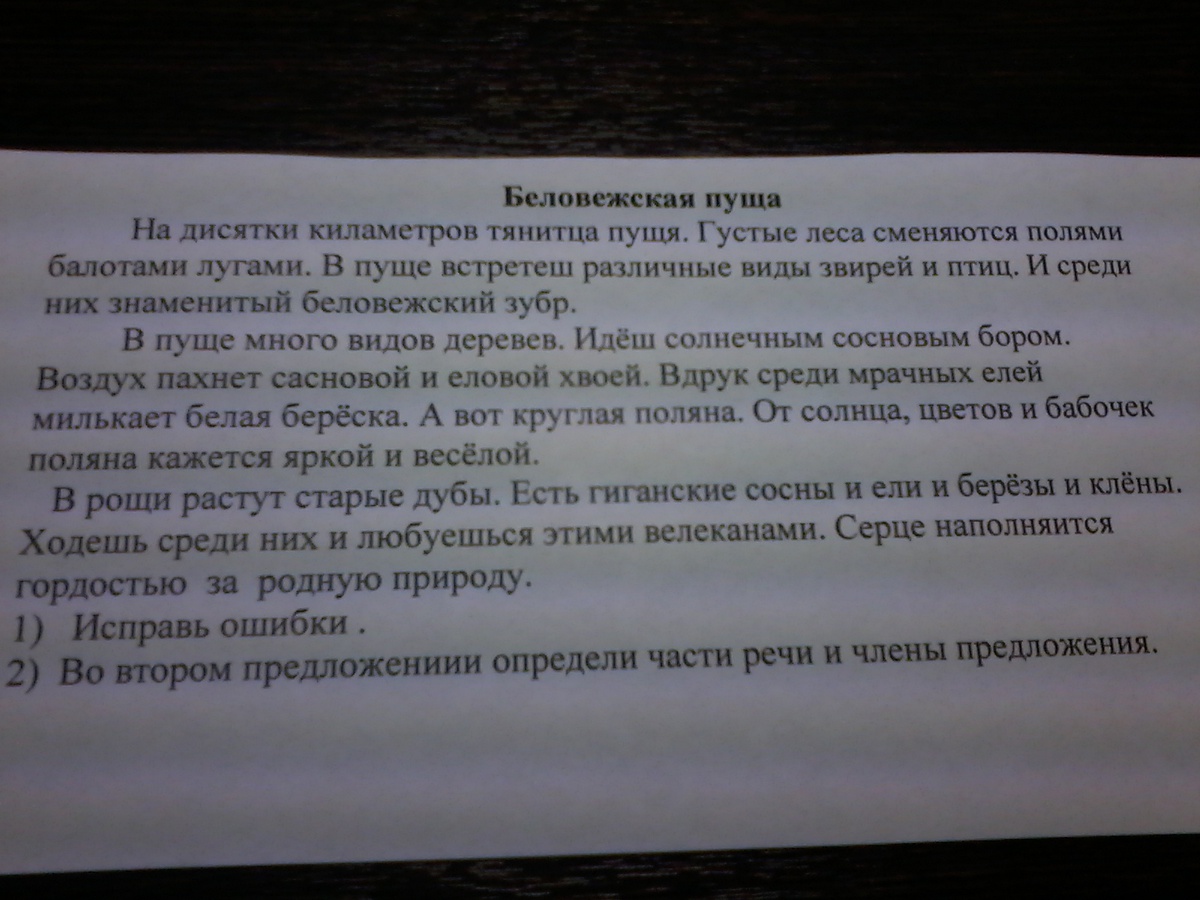 На дЕсЯтки килОметров тянЕТСЯ пущА.Густые леса сменяются полями, бОлотами,лугами.В пуще встретишЬ различные виды звЕрей и птиц. Среди них знаменитый беловежский зубр.