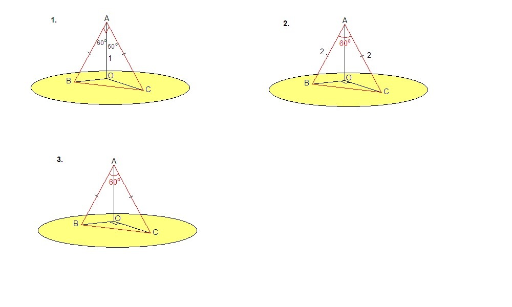 2) Из данной точки проведены к данной плоскости две наклонные, равные каждая 2 см; угол между ними равен 60°, а угол между их проекциями — прямой. Найти расстояние данной точки от плоскости.