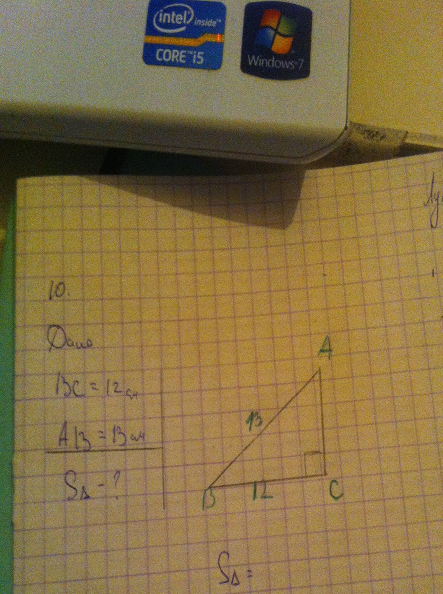 По т. Пифагора находим АС=5. Площадь равна 1/2•ВС•АС= 60/2=30 пожалуйста ;)