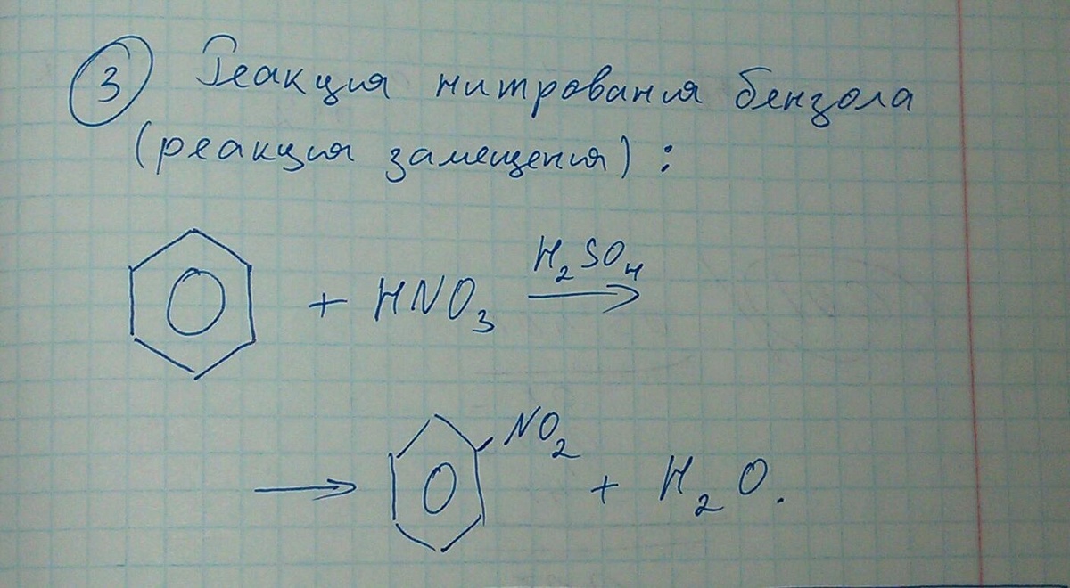 3. Нитрование бензола - реакция электрофильного замещения, получаем нитробензол