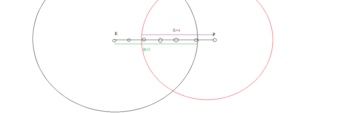 отметьте две точки А и Р так, чтобы КР=6 см. Постройте окружность с центром К и радиусом 5 см и окружность с центром Р и радиусом 4 см. Пересекаются ли эти окружности?