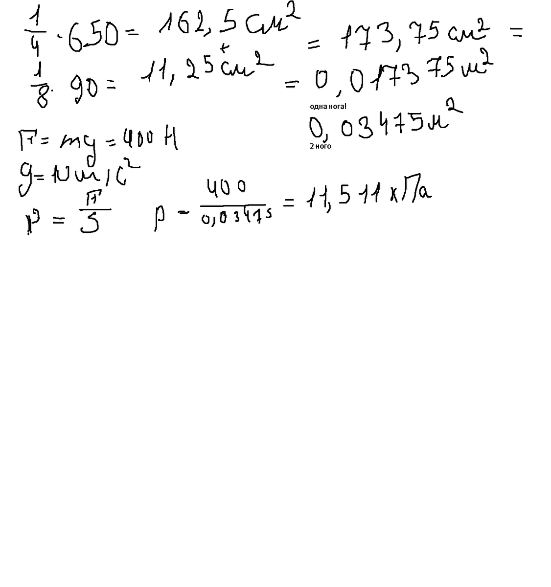 давление вы производите при ходьбе и стоя на месте.Указание.Площадь опоры ботинка определите следующим образом.Поставте на лист клетчатой бумаги и обведите контур той части подошвы,на которую опираеться нога.Сосчитайте число полных квадратиков,попавших внутрь контура,и прибавте к нему половину числа неполных квадратиков,через которые прошла линия контура.Полученное число умножте на площадь одного кводратика(площадь квадратика 1/4см(в квадрате))и найдитеплощадь подошвы!