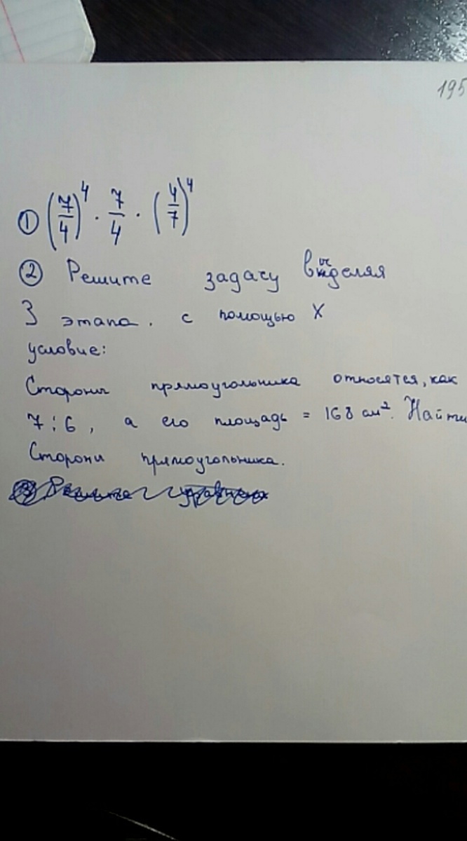 (7^4*7*4^4)/((4^4*4*7^4). 7^4 и 4^4 сокращаются с числителе и знаменателе. Остается дробь 7/4