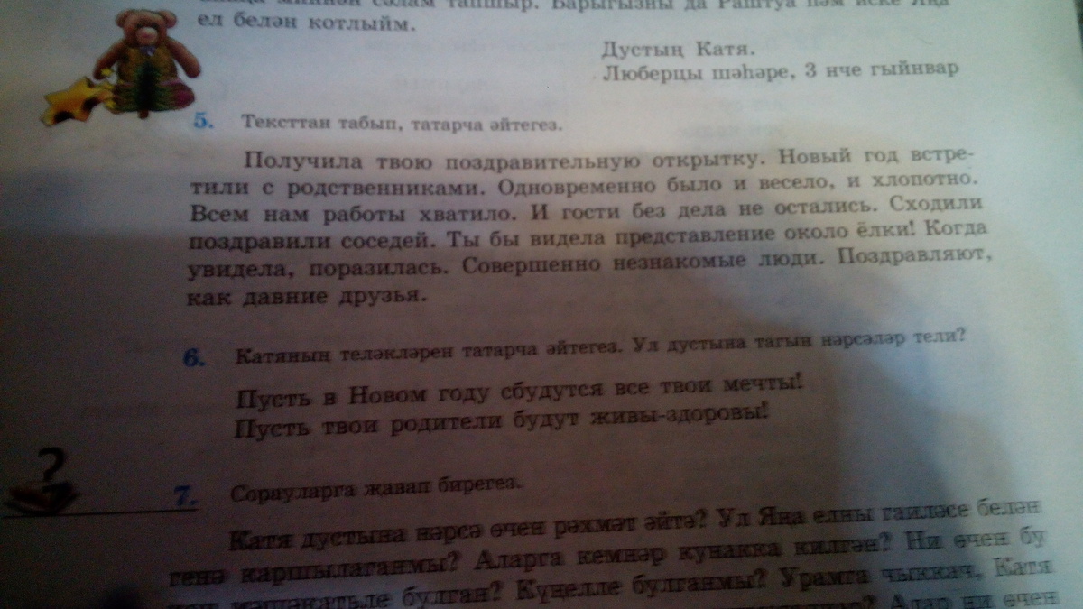 Синнэн котлау кэгазен алдым. Яна елны туганнар белэн каршы алдык. Берук вакытта кунелле дэ булды. Барыбызгада эш житте. Кунакларда эшсез калмадылар. Куршелэрне яна ел белэн котладык. Син курсэн чыршы янындагы куренешне? Кайчан курдем, исем китте! Бердэ бел. мэгэн кешелэр. Якын дуслар кебек котлыйлар!