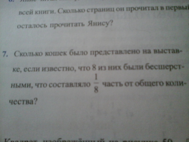 8 : 1 х 8 = 64 кошки были представлены на выставке.