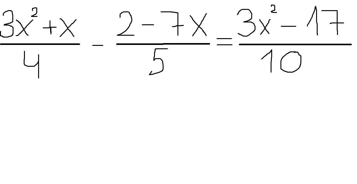 3x^2+x/4 - 2-7x/5 - 3x^2-17/10 = 0
