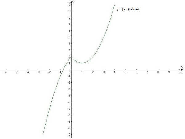Постройте график функции y= |x| (x-2)+2 и определите, при каких значениях m прямая y=m имеет с графиком ровно две общие точки.
