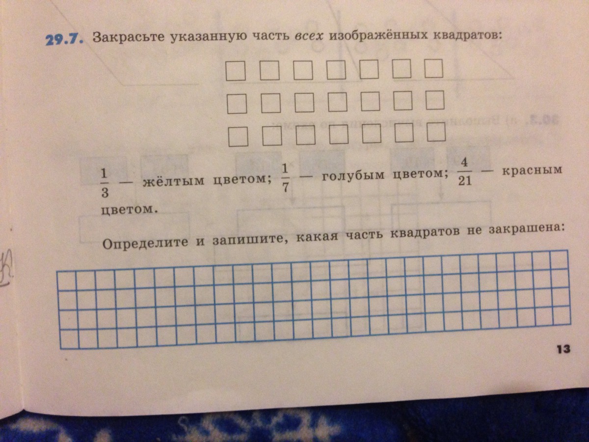 НЕ ЗАКРАШЕННЫХ 7 КВАДРАТОВ-ЭТО 1/3 А НЕ 7/21