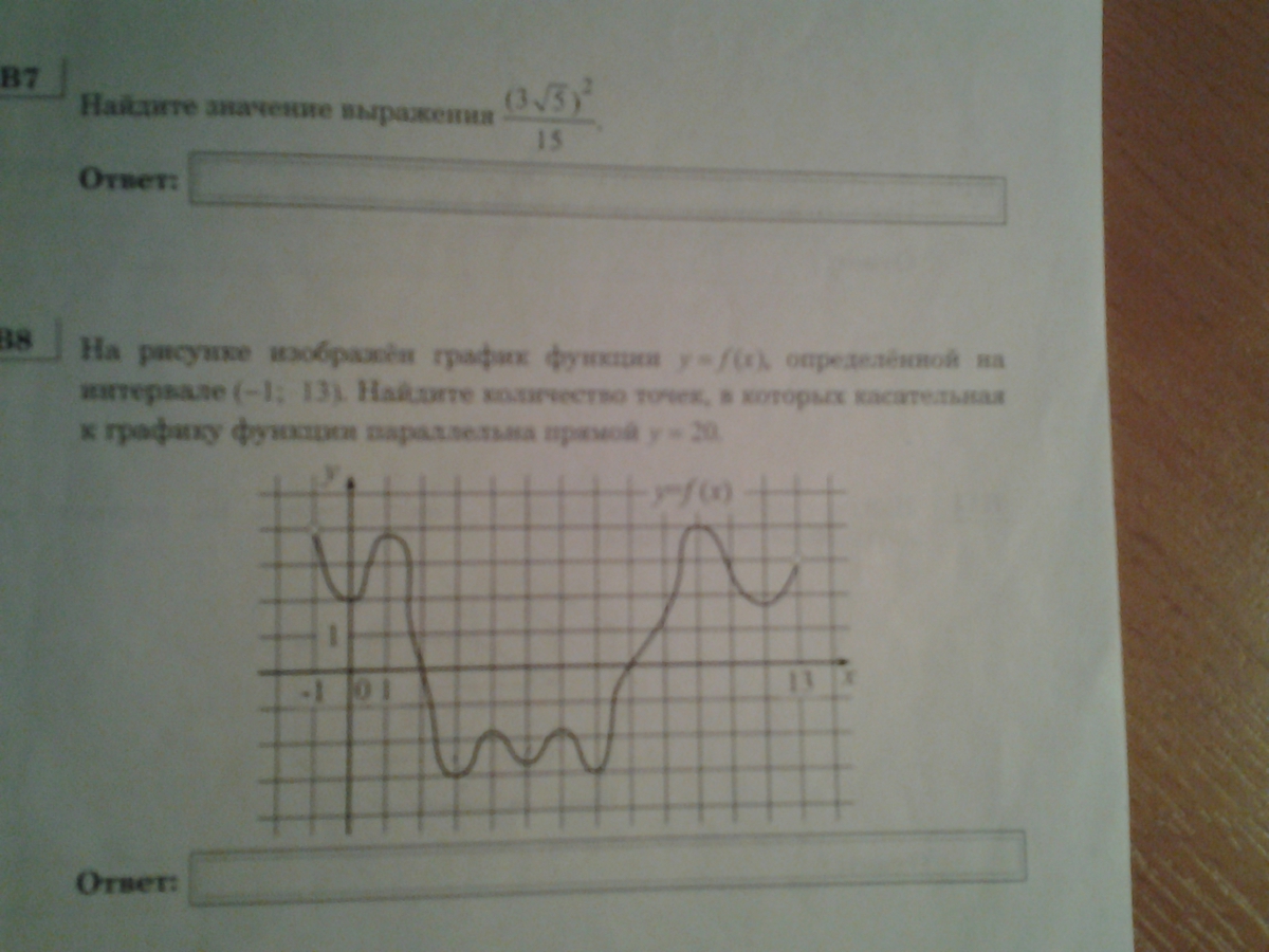 На рисунке изображён график функции y=f(x) , определённой на интервале (-1; 13).Найдите количество точек, в которых касательная к графику функции параллельна прямой y=20.