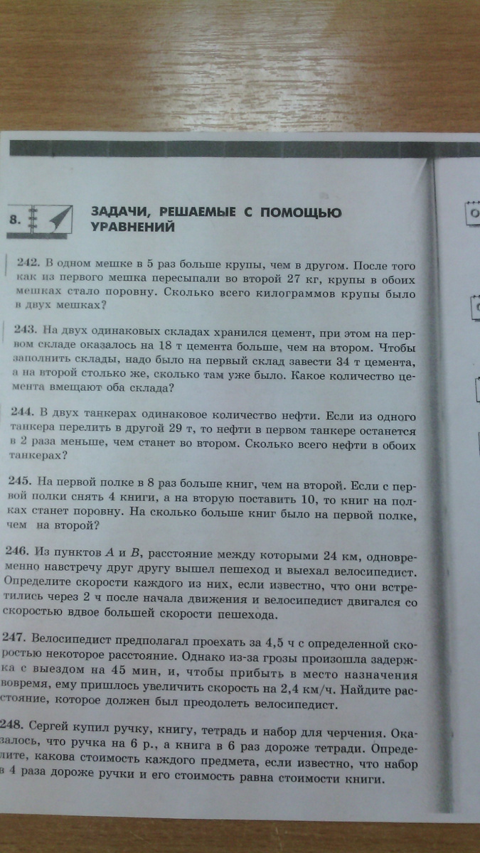 № 244. Было по х (т) нефти в каждом танкере. Уравнение: