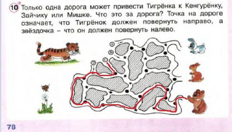 только одна дорожка может привести тигренка к кенгуренку, зайчику или Мишке... Петерсон 2 класс 3 часть страница 78