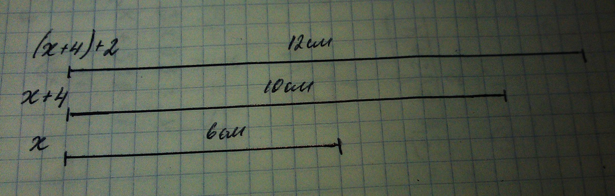 Начерти три отрезка один под другим так,чтобы средний был на 2 см короче верхнего и на 4 см длиннее нижнего.