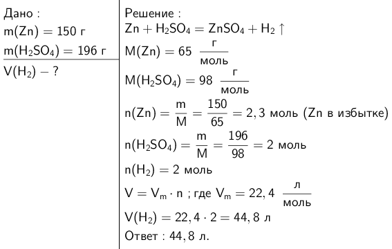 СРОЧНО!!! ПОЖАЛУЙСТА!! Какой объем водорода выделится при растворении 150г цинка в 196г серной кислоты. прошу подробное решение
