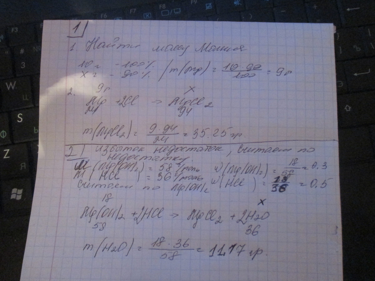2) вычислите массу воды, образующейся при взаимодействии 18 г гидроксида магния с раствором соляной кислоты, содержащей 18 г хлороводорода.