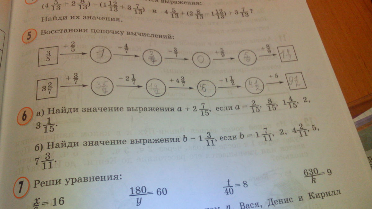 1) 2 целых девять пятнадцатых 2) три целых 3) 3 целых одиннадцать пятнадцатых 4) 4 целых семь пятнадцатых 5) пять целых восемь пятнадцатых