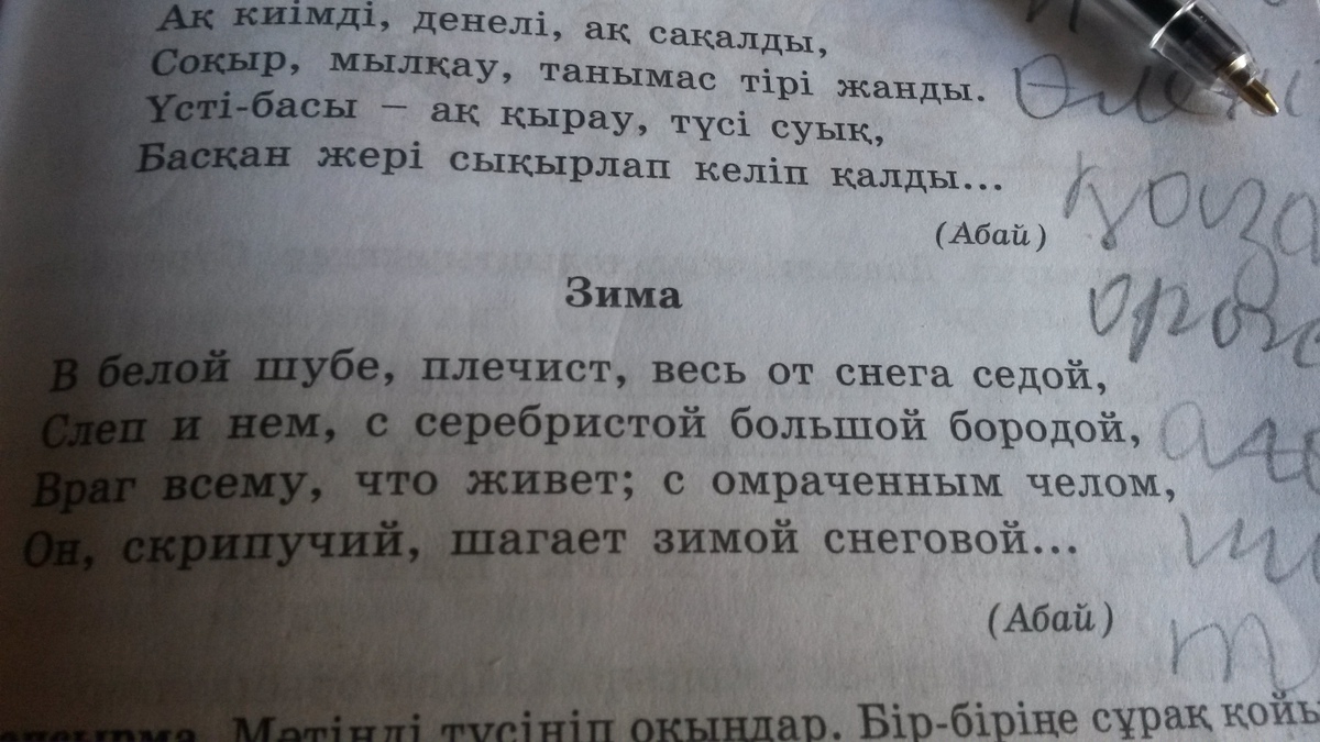 in a white coat, broad-shouldered, full of gray snow. Blind and dumb with a silver long beard, the enemy of everything that lives, with clouded brow, he walks squeaky winter snow ..Удачи )))