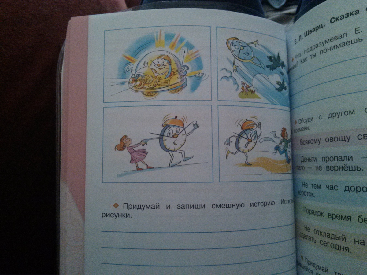 рабочая тетрадь по литературному чтению 4класс. нужно придумать и записать смешную историю. используя картинки.