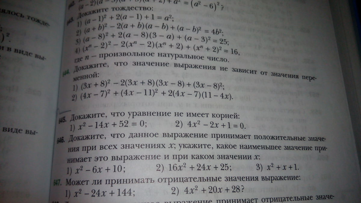 644. 1) свернем как квадрат разности (3х+8-3х+8)^2=16^2=256. Не зависит от переменной.