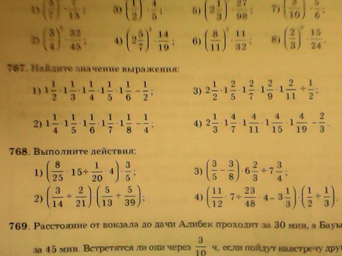 1)1 1/2*1 1/3*1 1/4*1 1/5*1 1/6-1/2=3/3*4/3*5/4*6/5*7/6-1/2=7/2-1/2=3 1/2-1/2=3 2)=5/4*6/5*7/6*8/7*9/8-1/4=9/4-1/4 =2 1/4-1/4=2 3)=5/2*7/5*9/7*11/9*13/11+1/2=13/2+1/2=6 1/2+1/2=7 4)=7/3*11/7*15/11*19/15*23/15-2/3=23/3-2/3=7 2/3-2/3=7 Я написала вначале раенство,т.к. не записывала примет,а только решение.Там где надо сокращай!