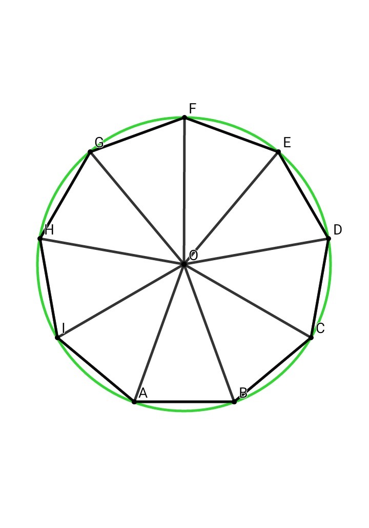 Радиусы, проведённые из центра окружности к вершинам данного правильного девятиугольника, разбивают дугу окружности на 9 равных частей