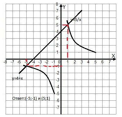у=5/x у=4+x