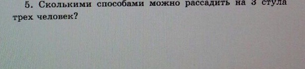 3 стула, 3 человека, обозначим буквами людей цифрами стулья