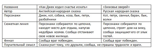 Сравнение сказок в таблице