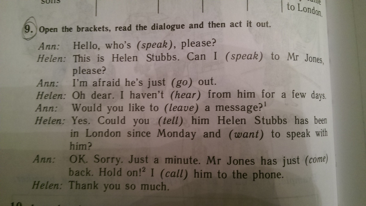 Ann: OK. Sorry. Just a minute. Mr Jones has just came back. Hold on! I will call him to the telephone.