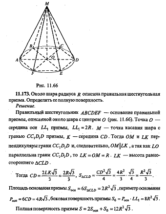 5. Около шара радиуса R описана правильная шестиугольная призма. Определить её полную поверхность.