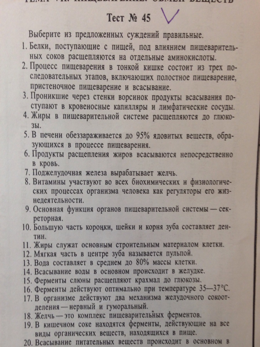 если в 20 пункте последнее слово - толстый кишечник- то верно, если что-то другое , то не правильно