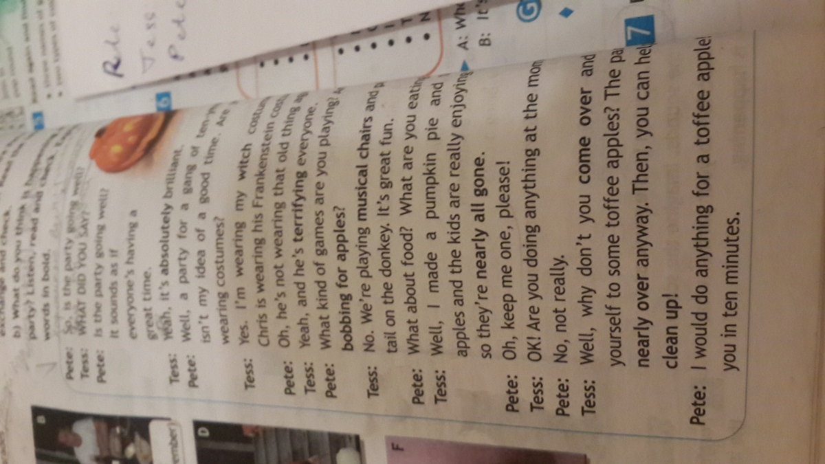 Tess: - Ну, такм почему бы тебе не присоединиться и пойти самому взять карамельные яблоки? Вечеринка почти закончилась. После ты можешь помочь мне убрать.