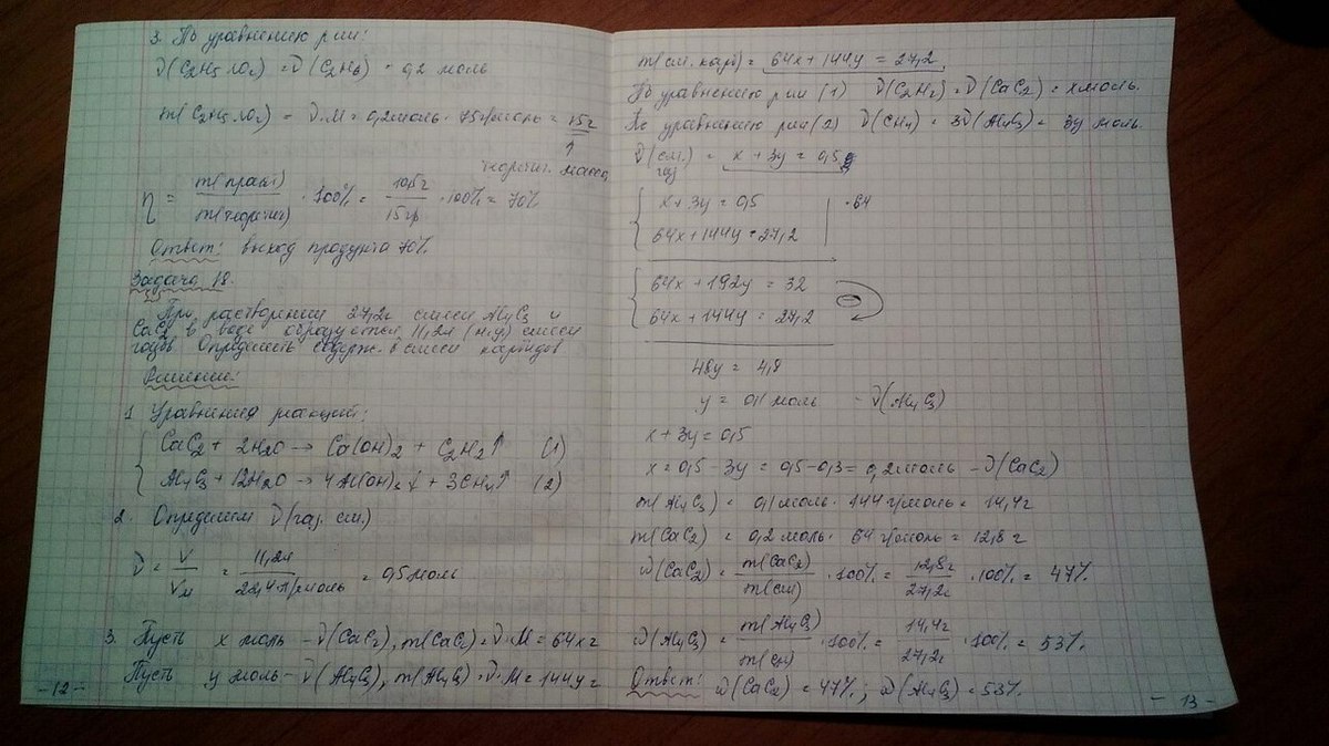 При растворении 27,2 г смеси карбидов кальция и алюминия в воде образуется 11,2 л (н.у.) смеси газов. Определите содержание карбидов в исходной смеси.